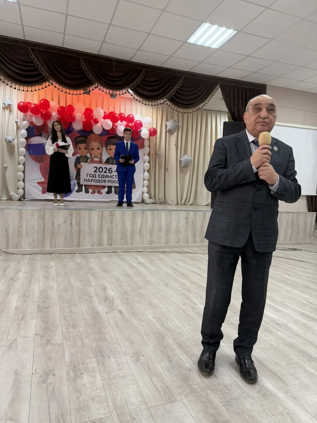 Мероприятие открылось исполнением Государственного гимна Российской Федерации, задав высокий патриотический настрой. Затем юнармейцы внесли знамя гимназии. Торжественную часть продолжил директор гимназии Арутюн Манукович Назарян. В приветственном слове он рассказал о том, что наша страна — уникальный союз 194 народов, каждый из которых вносит свой неповторимый вклад в общую культурную палитру нашей страны. Зал, наполненный учениками, педагогами, родителями и приглашёнными гостями, поддержал аплодисментами слова руководителя о том, что единство народов — не просто лозунг, а традиция, скрепляющая народы и поколения. Великолепный концерт, подготовленный учащимися и педагогами, стал живым подтверждением единства народов России.